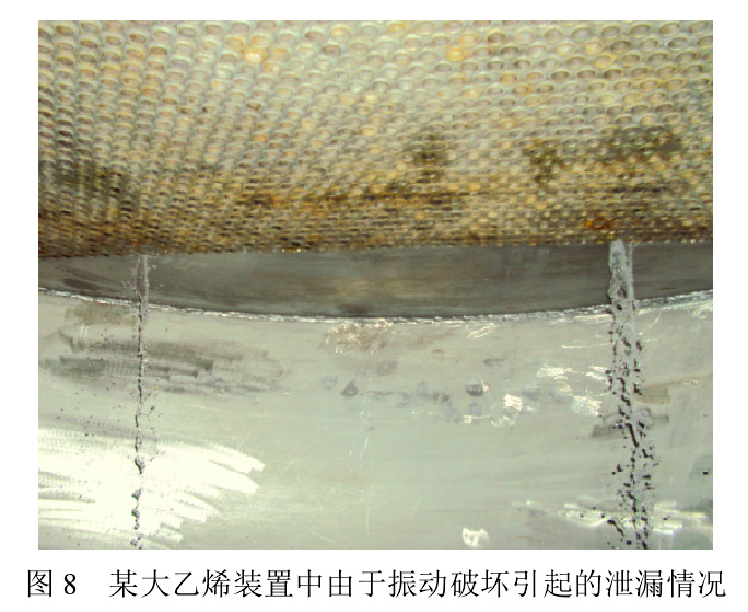 對大型換熱器來說,換熱管的數(shù)量大,換熱管的壁較薄,換熱管與管板的連接接頭質量對大型換熱器的可靠性影響概率顯著增大。另外由于大型換熱器的換熱管較長,換熱器的支撐設計尤為重要,流固耦合等許多技術問題需要考慮。由于無支承跨距設計不合理造成的破壞時有發(fā)生(圖 8),它不僅會造成折流板和換熱管之間的損傷,也會造成換熱管與管板的連接接頭的損傷。另外,大型換熱器管束或板束的長度大,也提高了熱應力破壞的可能性。更為嚴重的是,上述幾個因素的交互影響,降低了大型換熱器的可靠性(圖 9 顯示了由于多種因素造成的板殼式換熱器的破壞)。因此,要充分認識大型換熱器的諸多難題,在設計和制造中制定嚴格的技術對策和控制措施。