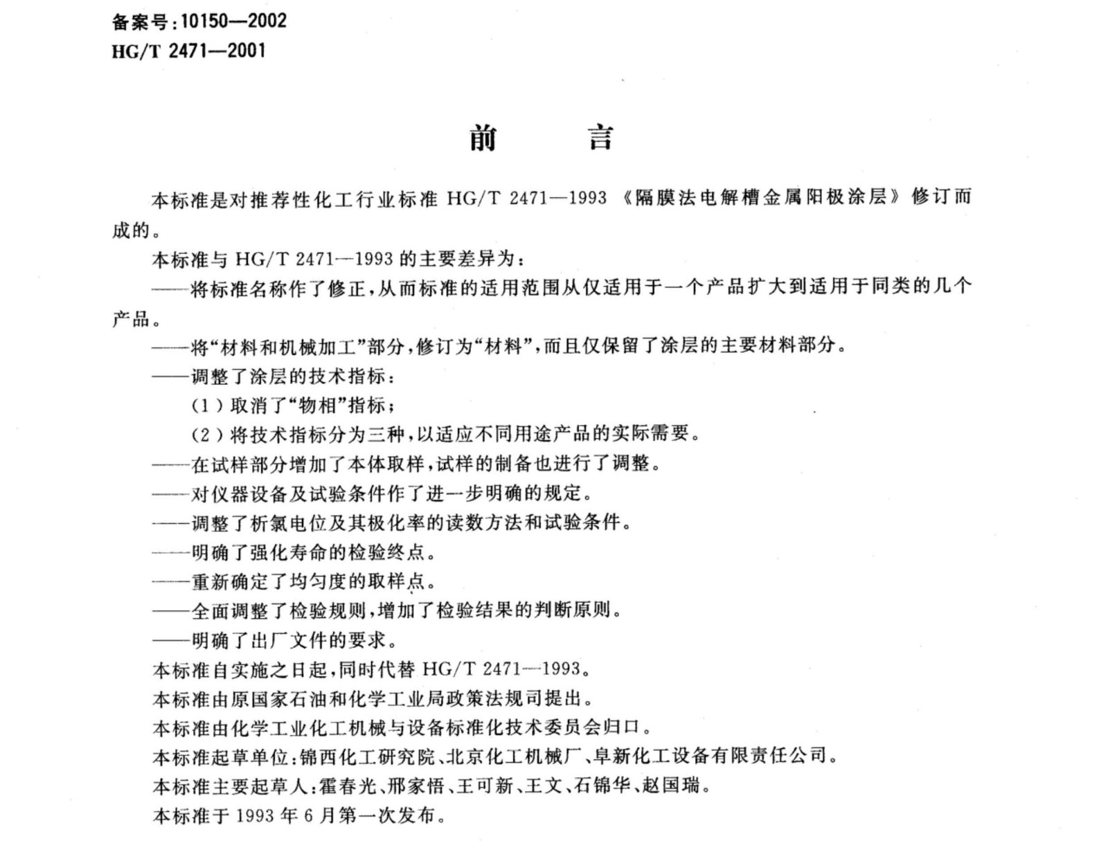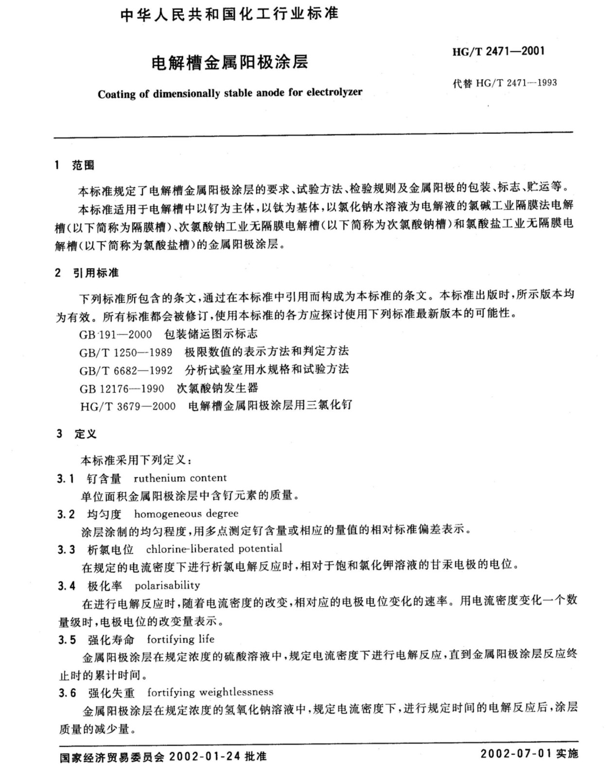 化工行業(yè)用鈦陽極標(biāo)準(zhǔn) HG/T 2471—2001